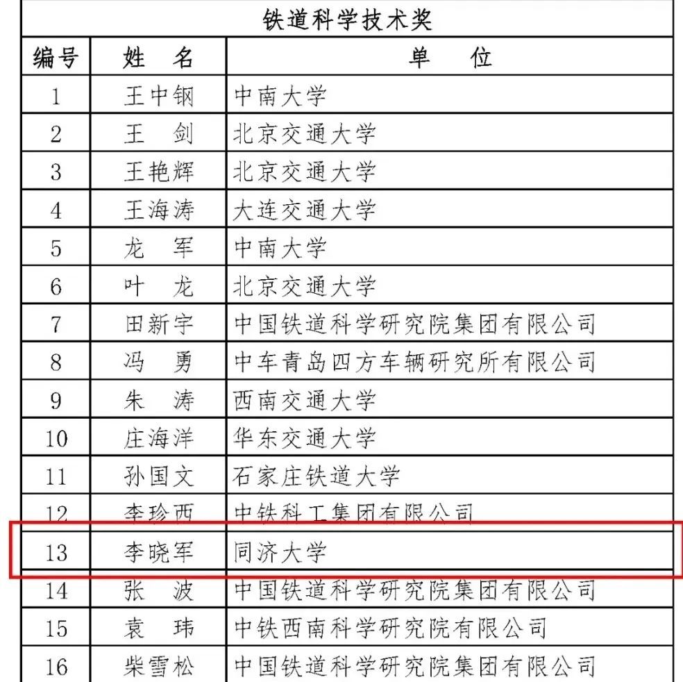 近日,第二十七届茅以升科学技术奖获奖名单正式公布,同济科技园虹口园企业——上海爱楒睿信息科技有限公司创始人、同济大学特聘教授李晓军荣获“铁道科学技术奖”这一殊荣。