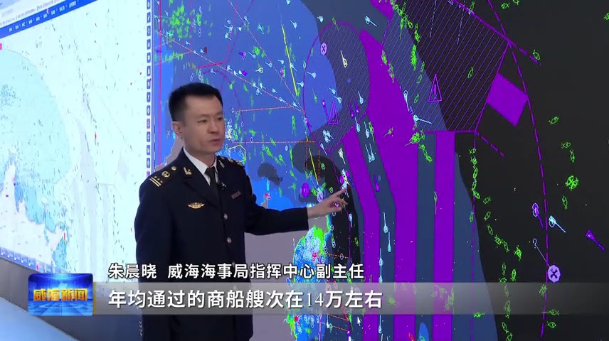 威海海事局指挥中心副主任朱晨晓说,威海东部海域是咱们国家进出渤海湾的一个重要的海上物流运输通道,年均通过的商船艘次在14万左右,也有大量的渔船在这片水域进行捕捞作业。他们这两类船舶会发生很多高频次的交叉会遇,容易造成碰撞的事故发生。