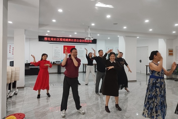 为丰富社区老年人精神文化生活,让老年人老有所乐、老有所为,4月22日下午,滕州龙泉街道樱花苑社区新时代文明实践站开展樱苑蝶舞社团公益训练活动。