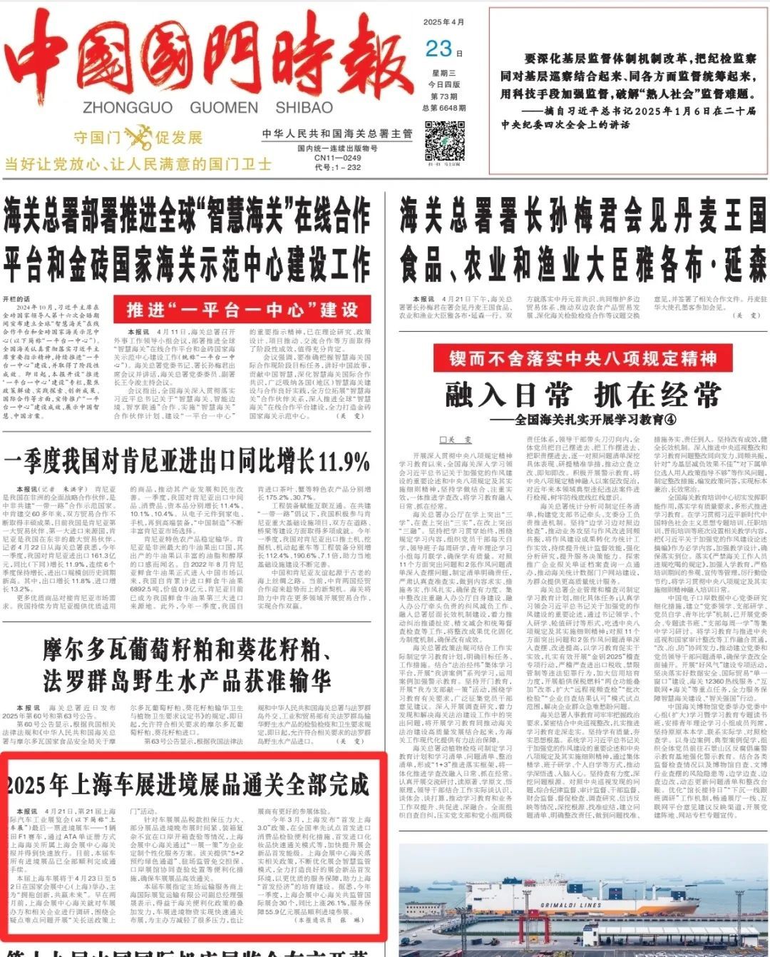 ●03 2025年上海车展进境展品通关全部完成(海关总署门户网站、中国国门时报、解放日报、上海电视台、东方卫视、学习强国、浦东时报、新民晚报)