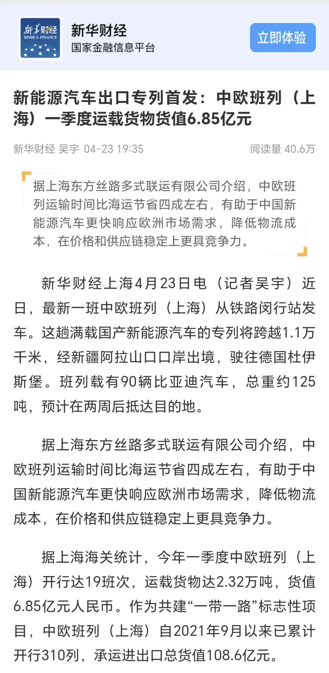 ●04 海关保障中欧班列(上海)新能源车出口专列顺利首发(新华财经、学习强国、上观新闻、上海法治报)