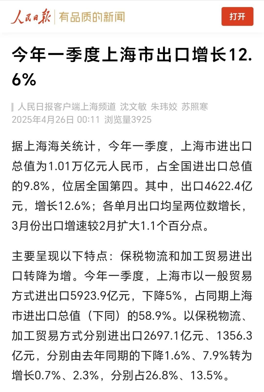 ●01 今年一季度上海市出口增长12.6%(人民日报、经济日报、解放日报、上海电视台、东方卫视、文汇报、界面新闻网、上观新闻)