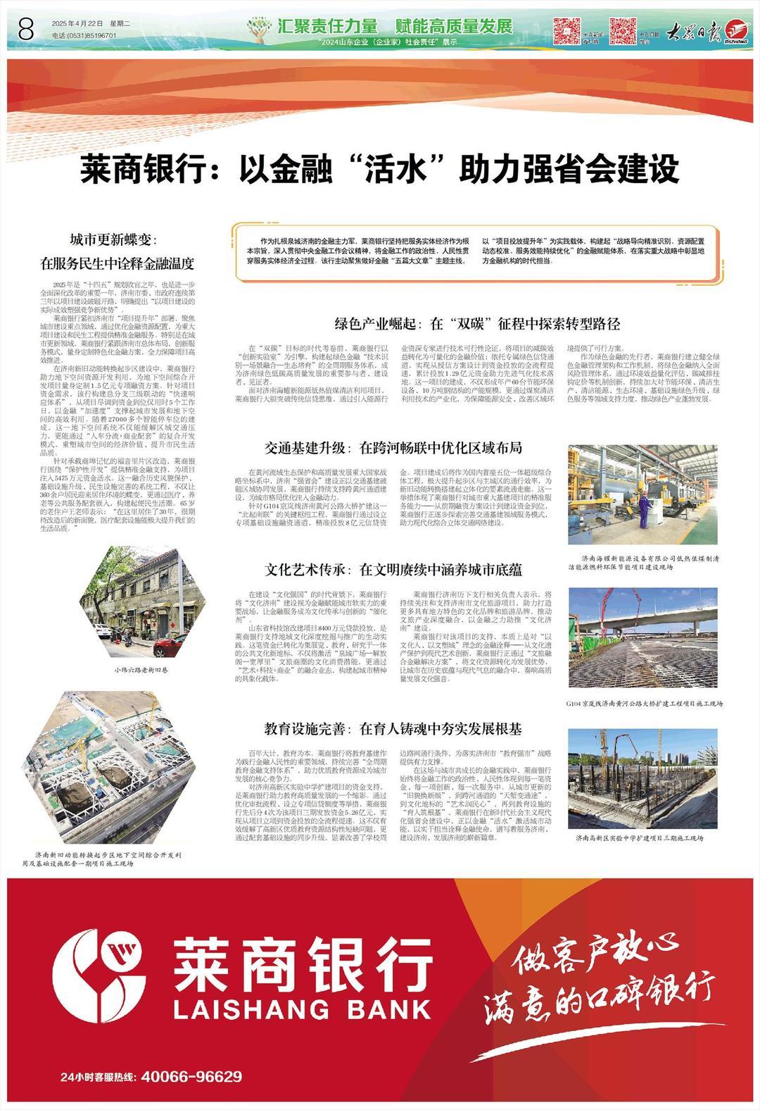 在黄河流域生态保护和高质量发展重大国家战略坐标系中,济南“强省会”建设正以交通基建破题区域协同发展,莱商银行持续支持跨黄河通道建设,为城市格局优化注入金融动力。