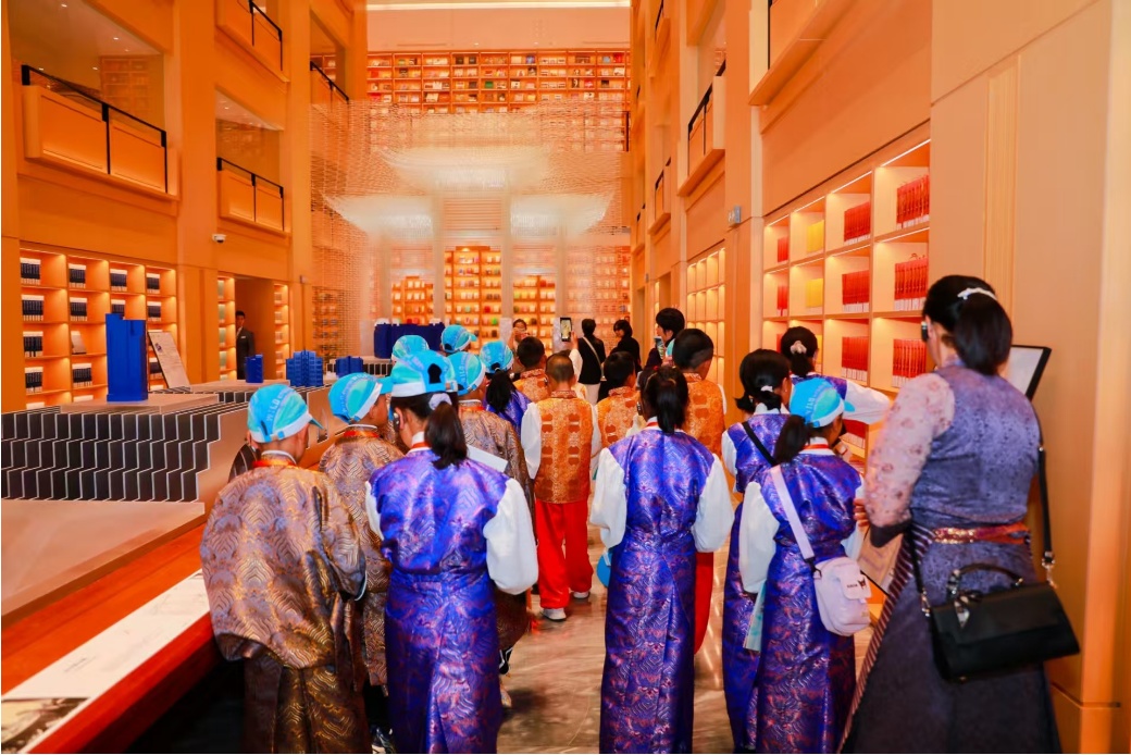 随后,师生们步行至港汇恒隆广场,接受了商场捐赠的图书与文具礼包,这些图书将被充实到灯塔书房中去。孩子们还参与了“灯塔快闪”阅读活动,在商场的阅读岛上,沪藏青少年共读绘本,分享故事,笑声与书香交织成民族团结的温馨画面。