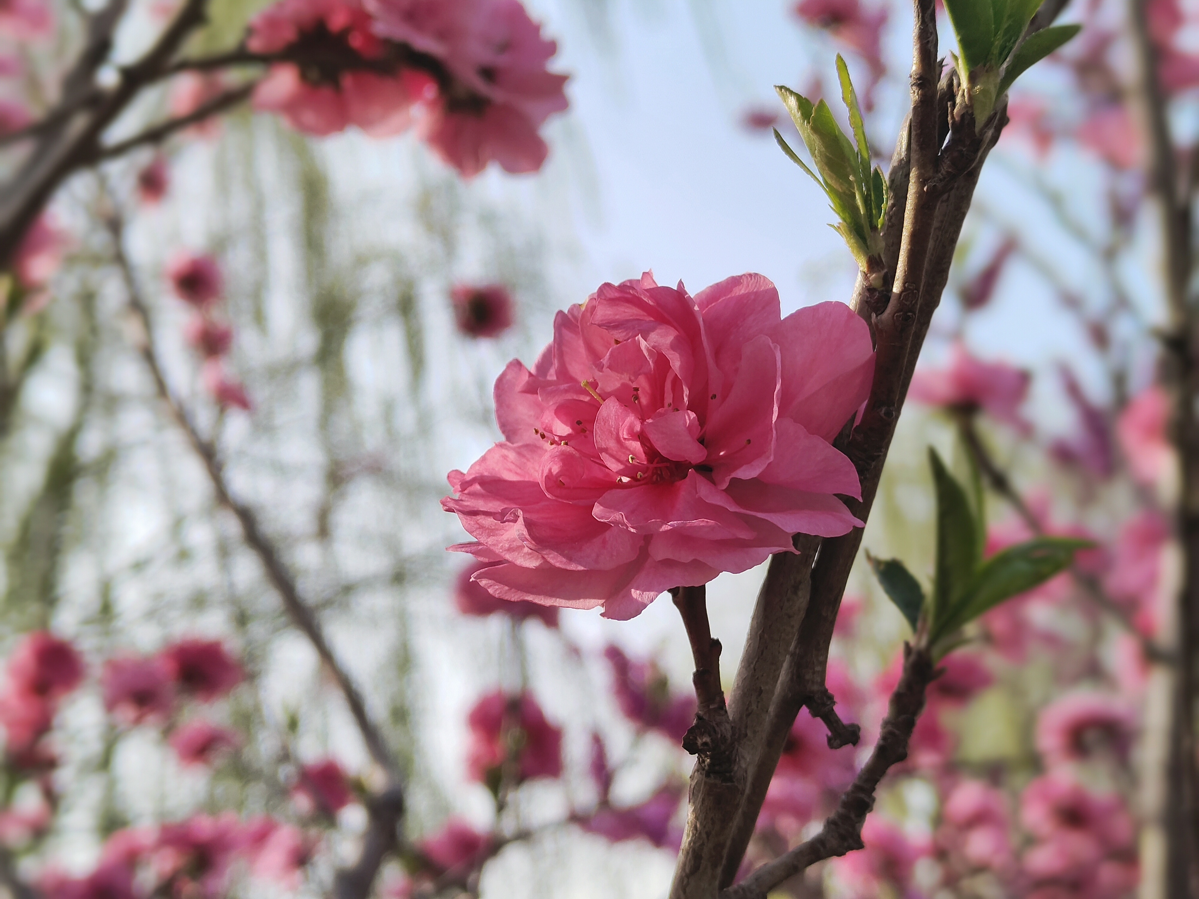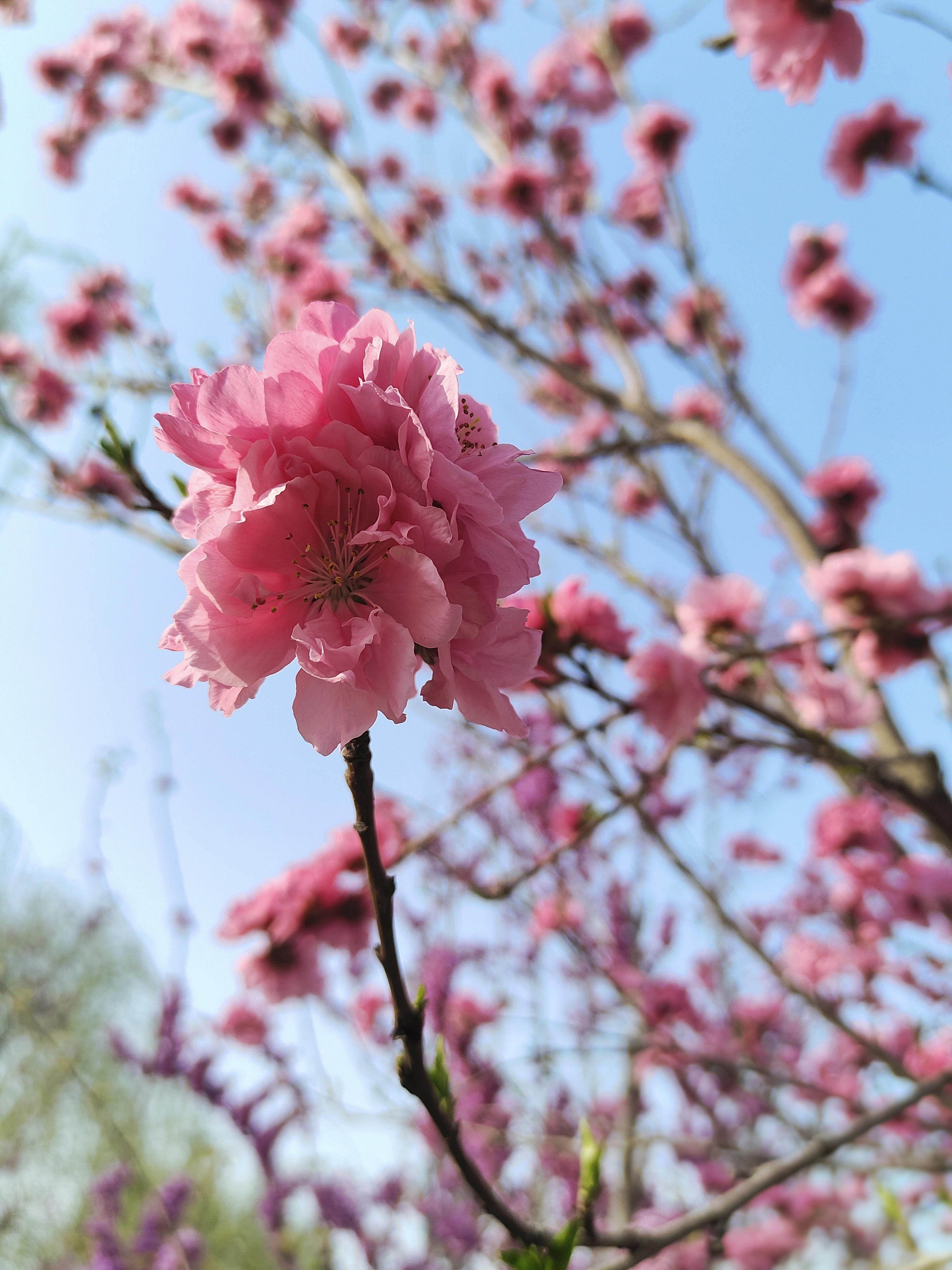 春日暖阳倾洒,碧空如洗。枝头花朵灼灼,粉瓣娇嫩,如少女羞怯的笑靥。微风轻拂,花枝摇曳,似在与春风私语。那一抹抹明艳色彩,是春的诗笺,诉说着生机与希望,将整个世界晕染得温柔又绚烂。