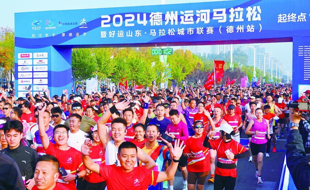 2024年11月3日,2024德州运河马拉松暨好运山东·马拉松城市联赛(德州站)鸣枪开跑,吸引了来自全国各地的1万余名参赛选手。赛道为我市首条国际马拉松赛道,由减河、岔河城区段防汛堤顶路改造而来,是一条无障碍、不间断、沉浸式的标准马拉松赛道。“借河道建赛道,马拉松赛、自行车赛‘一道两用’,可吸引更多人来德州观光旅游、参与体育赛事。”市水利局副局长王书芹介绍。