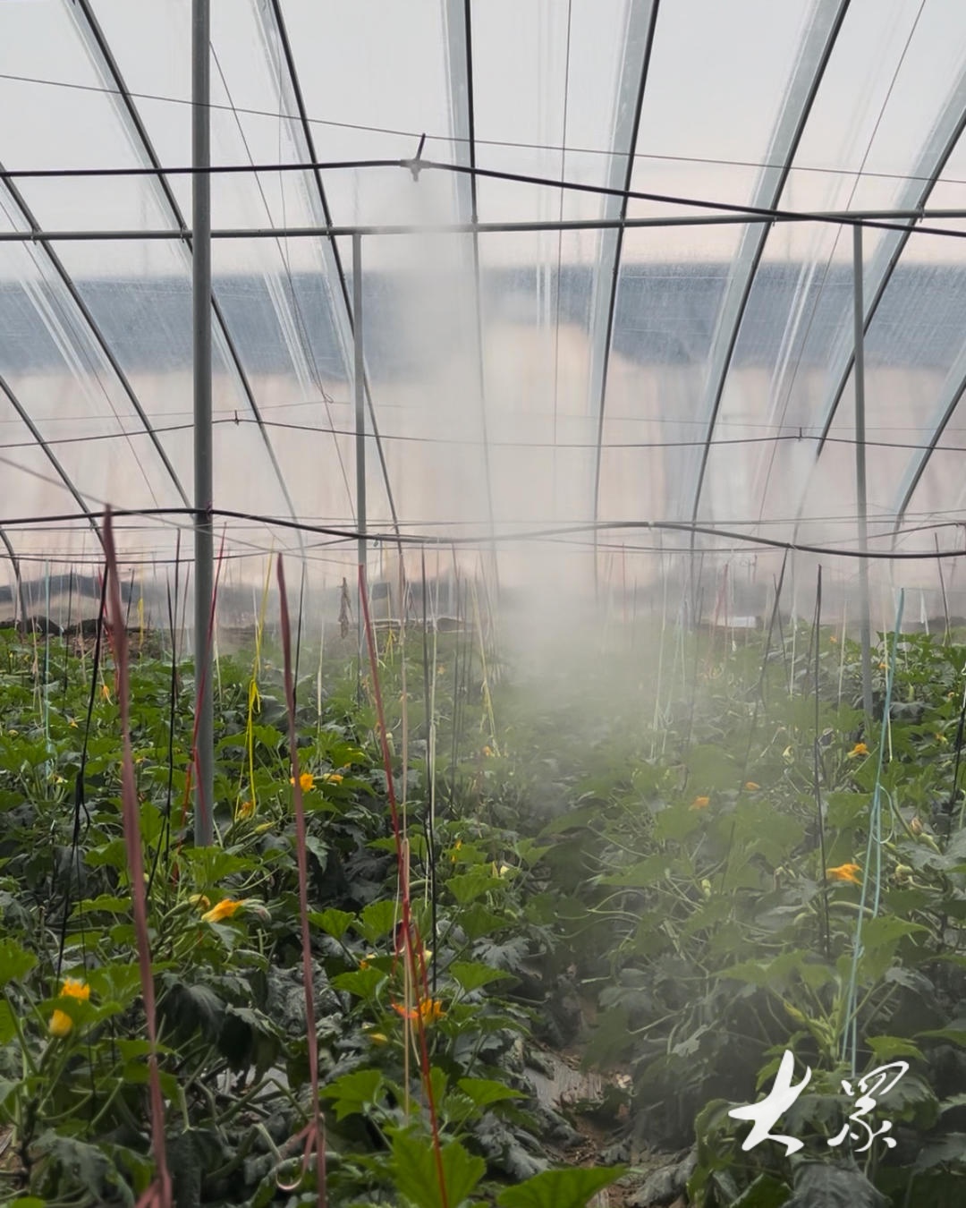 随着科技的不断发展,上冶镇的西葫芦产业也迎来了新机遇。孙百胜自己的西葫芦大棚主要集中在上冶镇兴国村。这里,22个现代化的种植大棚错落有致,每个大棚占地2-5亩不等。在大棚内,绿油油的西葫芦秧攀爬而上,结出了一个个饱满的果实。“大棚内安装了电动打药、电动放风、电动轨道车、水肥一体等自动化控制系统等。这些设备的引入,显著提高了工作效率并降低了人工成本。”孙百胜说,以前需要多人操作的任务,现在一个人通过遥控设备就能轻松完成。