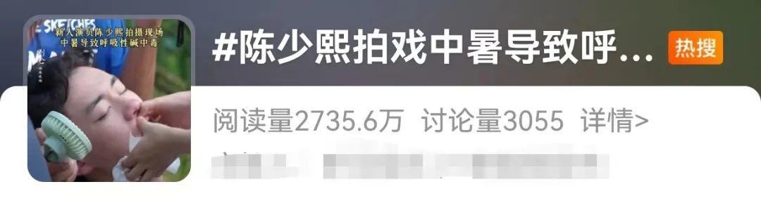 此前,新人演员陈少熙在拍电影过程中,因为中暑导致呼吸性碱中毒。