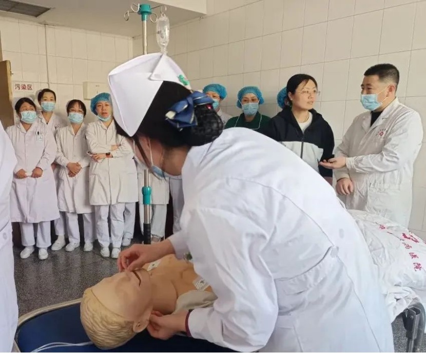 近日,烟台北海医院护理部为进一步提升医护人员应对突发猝死的应急处置能力,优化急救流程,组织急诊科、神经外科等多科室开展了一场“患者突发猝死应急预案”情景模拟演练。各科室护士长及护理骨干参加观摩,通过逼真的场景还原和严苛的流程考核,展现了医院“以练促战、以战提能”的急救培训理念。