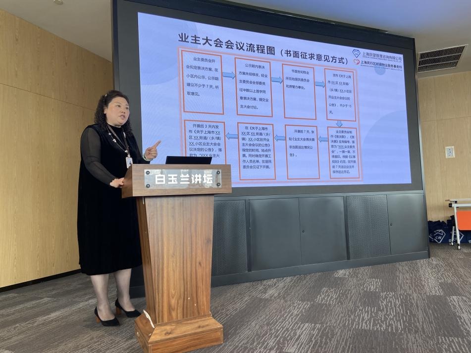 培训主要聚焦专项维修资金使用规范和公共收益管理,老师结合法律法规文件,详细解读了维修资金定义、使用范围、支取、一般支用等重点内容,并就业委会在实操层面关心的工程审价、换届审计、年度审计的相关制度以及业主大会会议召开流程,进行了系统梳理,为在场的业委会成员提供了一场务实高效的“履职充电”。
