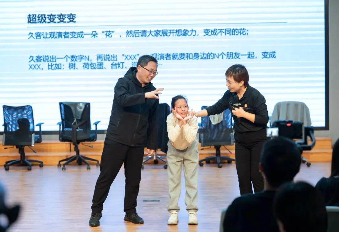PART 1 戏剧为媒,共探家庭育儿难题 首演剧目《怎么说,孩子才会听?》以“隔代教育冲突”为核心议题,由颛桥学区一线教师担纲主演。教师们褪去职业身份,化身三代同堂家庭中的不同角色,通过细腻的表演与情感张力,真实再现了现代家庭中育儿观念碰撞、代际沟通障碍等典型场景,引发观众对家庭教育痛点的深度共鸣。 与传统戏剧形式不同,“家庭剧场”引入“观众即兴创作”环节。当剧情推进至矛盾激化节点时,演出暂停,现场观众受邀登台接续剧情。在首演中,一位观众主动饰演“父亲”角色,以高情商沟通技巧巧妙化解剧中婆媳育儿分歧,其即兴表演赢得全场掌声。这一设计打破“观演壁垒”,让参与者通过实践反思教育方法,推动理论向行动转化。