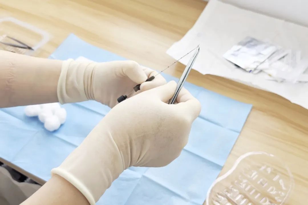 4月24日上午,32岁的彭女士来到市六医院金山分院针推伤科操作间,进行穴位埋线减肥。针推伤科主治医师王华首先对腹部穴位进行消毒,然后用细针将线体埋入皮下,整个过程不到20分钟。