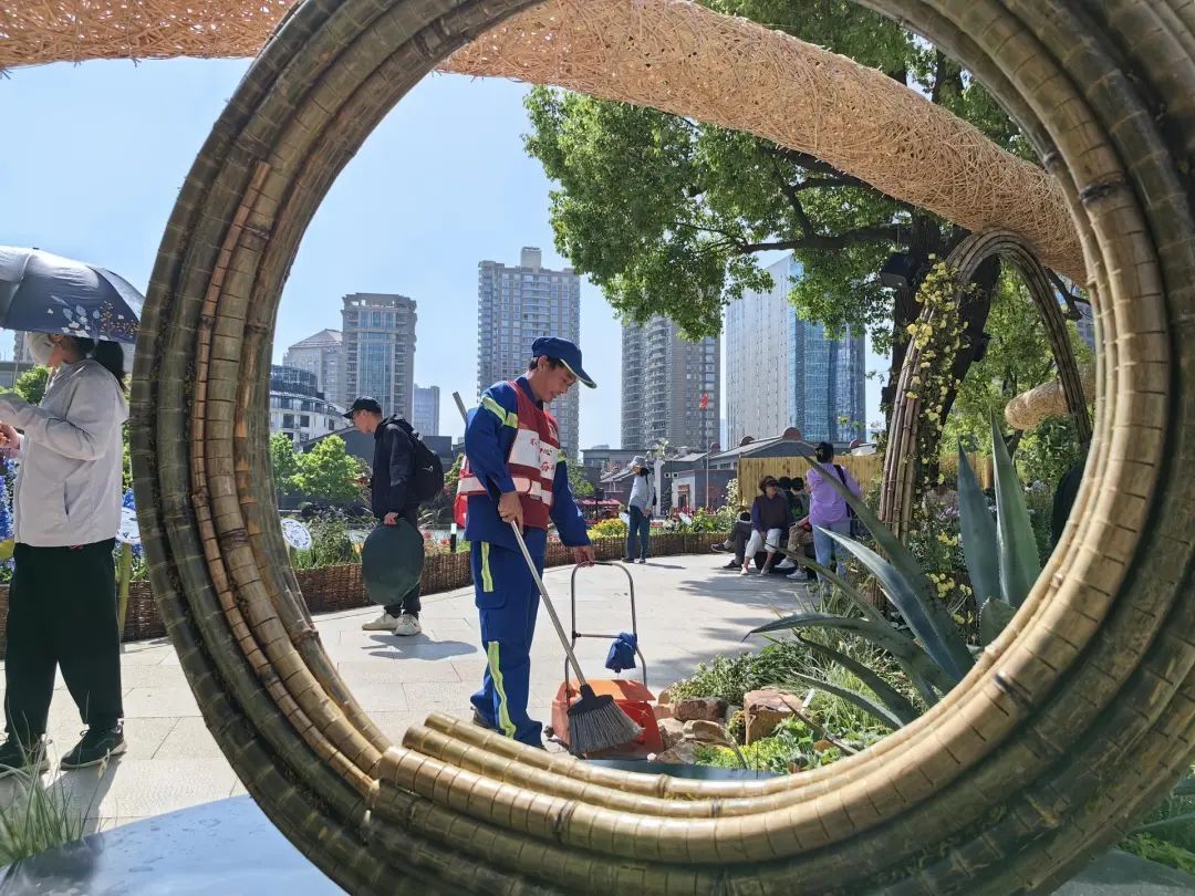 2025上海国际花展正迎接着来自四面八方的宾客。黄浦这群“城市美容师们”也正以高度的责任心和专业的服务能力,默默守护城市的“颜值”,让繁花盛景与整洁环境相得益彰,为这场国际盛会增添了一抹亮丽的底色。