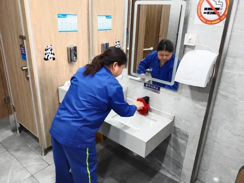“五一”花展期间,公厕使用频次也在激增,每日9:00 前对花展周边5座公厕完成蓄粪池首轮彻底清空,采用密闭式抽吸车作业,确保“抽吸无滴漏、作业降噪音”,对人流量大的区域增加“预判式清运”,避免蓄粪池满溢。除此以外,为每辆作业车辆配备便携式除臭装备,作业后即时对周边地面、设备接口进行冲洗消杀,实现“清运过程全封闭、异味控制全时段”。
