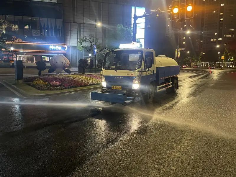 而在夜间,他们采用“地毯式”作业法,以深度保洁为核心,开展全方位的大冲洗,在夜间完成地面“焕新”及设施全面清洁,为次日花展的顺利开展提供坚实的环卫保障。
