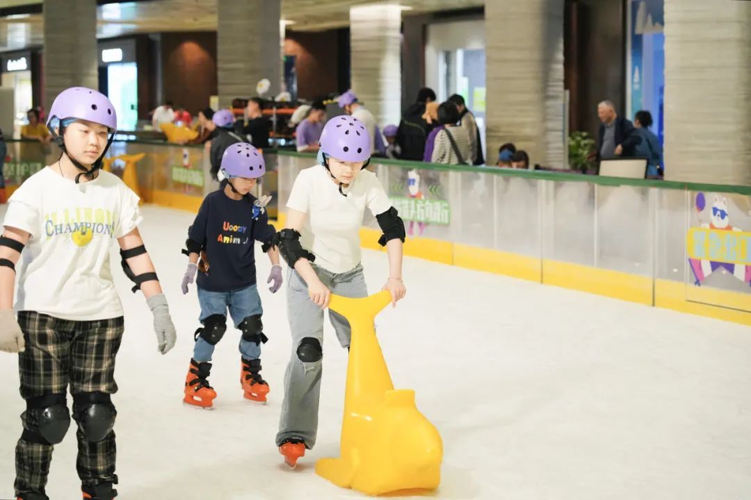 面对高温天气下冰场运营的挑战,天安千树ICE FAMILY“真冰王国”店长说,冰场加装防护栏,入口处配备防滑地垫、防滑冰鞋,鞋码覆盖儿童28码至成人46码。“不管是成人还是年轻市民,都需要佩戴安全护具,对于新手而言一定要‘外八字’腿慢慢来。如果摔倒起不来,我们现场也有安全员提供帮助。”