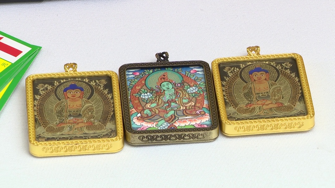 各种文创产品也别具魅力,同仁作为青海唯一的国家级历史文化名城,这次带来了有着悠久历史的热贡艺术唐卡挂件,挂件里的唐卡以工整线条、鲜亮色调的山水和人物,立体感强,具有很高的艺术水准。