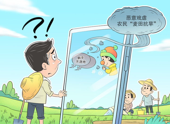 将农民头顶烈日、脚踩干涸土地抗旱的艰辛劳动,当作娱乐素材,以戏谑、调侃的姿态来博取流量,既缺乏对劳动的基本尊重,更会误导公众认知,消解社会对农业生产的关注与支持。杜绝此类现象发生,一方面需要公众提升媒介素养,共同抵制不良内容的发布和传播;另一方面,平台需加强审核,监管部门要依法严惩,守护好农业生产的希望与未来。