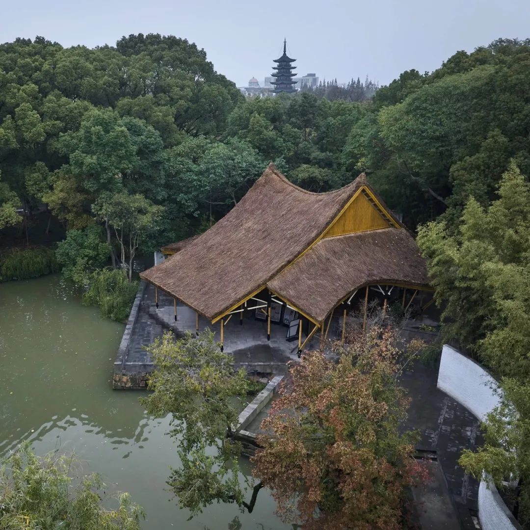 何陋轩是我国著名建筑学家冯纪忠先生的代表作,始建于1986年,至今仍代表着中国现代园林建筑的最高水准。2023年3月,冯纪忠先生的学生、同济大学建筑与城市规划学院教授黄一如主持完成重修。由于何陋轩建筑主体以竹子为柱、茅草为顶,其所有材料属自然材质,具有特殊性,易随时间变化而老化,需要定期维护保养以及更换。