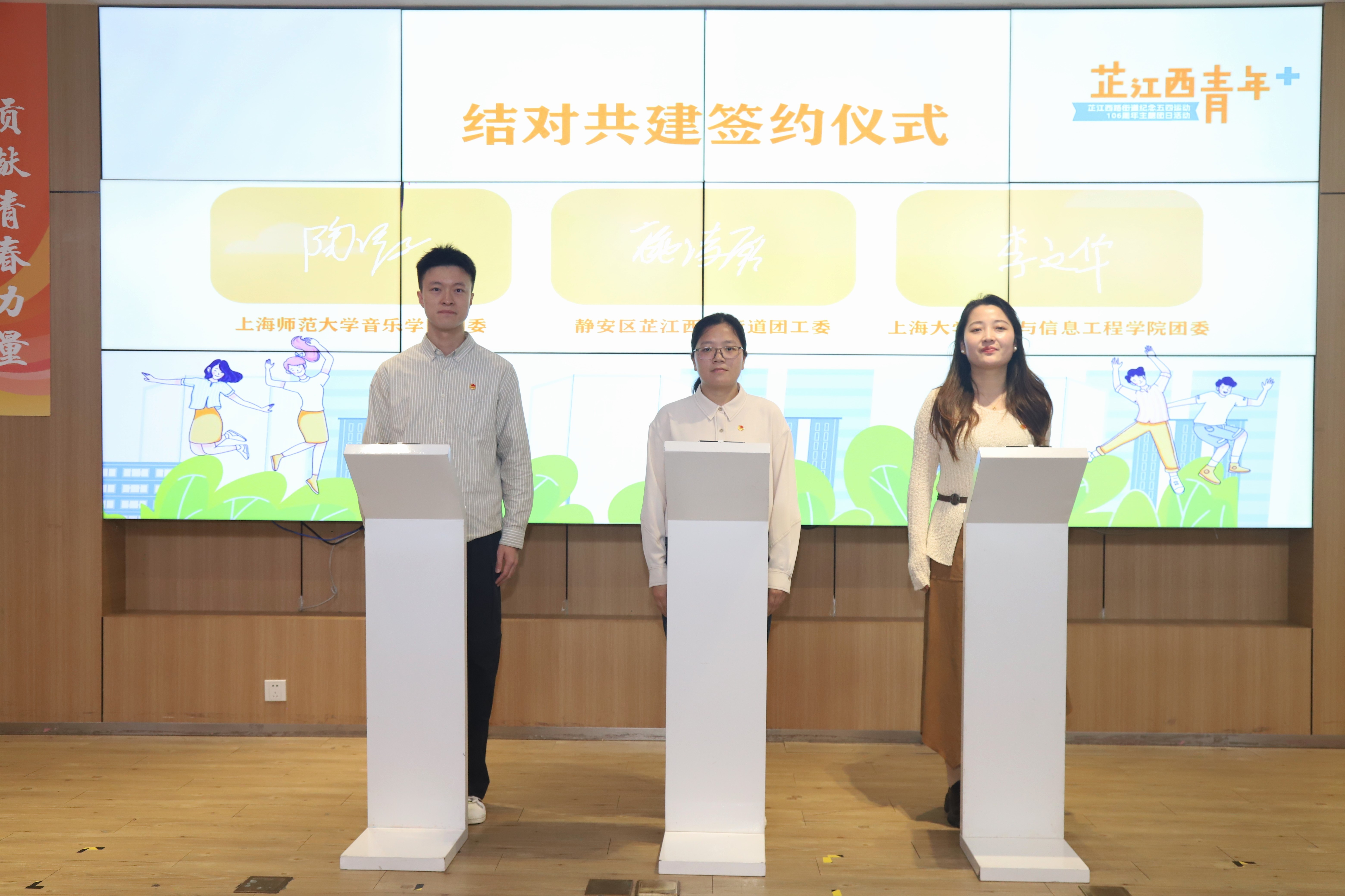 为进一步整合资源、凝聚合力,静安区芷江西路街道团工委分别与嘉定区嘉定镇街道团工委、上海大学通信与信息工程学院团委、上海师范大学音乐学院团委签署《结对共建协议书》。此次结对共建旨在让青年的成长需求与社区的发展蓝图实现同频共振,让“高校智库”与“社区沃土”实现深度融合,为青年成才、社区发展搭建起更广阔的舞台,孕育出无限可能。