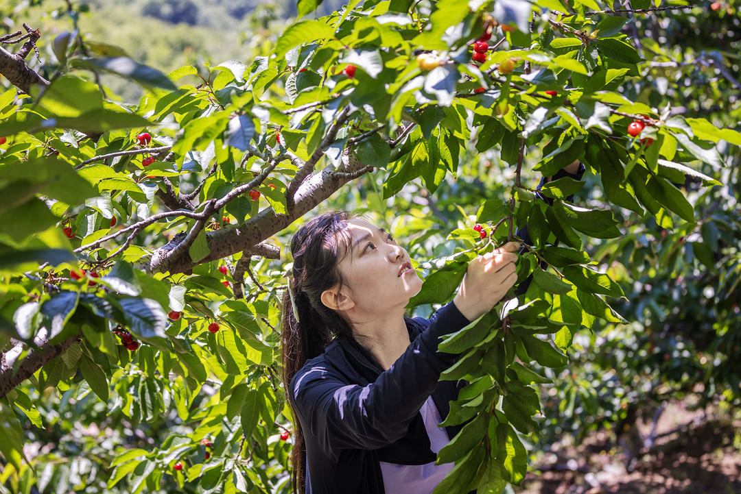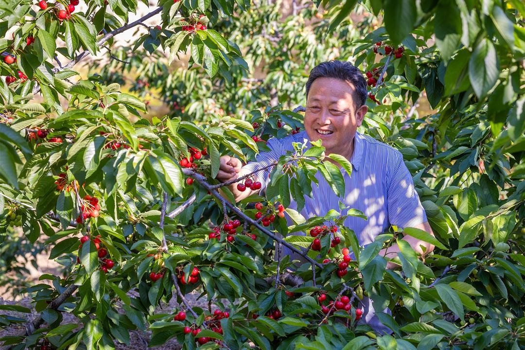 有“春果第一枝”之称的樱桃熟了!济南南山里通往王家峪村的路上挤满了采摘的队伍。随便进入一家樱桃园,满树尽是密匝匝、红彤彤的樱桃。正在采摘樱桃的王家峪村支部书记王洪兴说,村里的樱桃是喝着山泉水、用着微生物菌肥长大的,酸甜适口,每年这个时节,村里千亩樱桃都要迎来数以万计的采摘人,这里成了市民们的“樱桃篮子”。