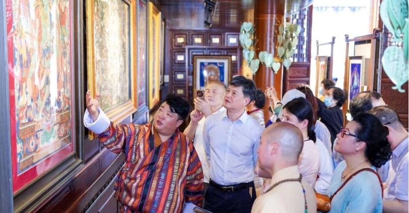 “会心九人展”以文人精神为内核,汇集上海诸多当代书画名家力作。当代书画名家陈翔先生在开幕式致辞中表示:“展览旨在展现传统书画艺术与东方美学思想的深度对话。”同步开展的“妙心无尽”非遗唐卡展,邀请到青海唐卡艺术家桑吉才让现场展示千年非遗技艺,通过矿物颜料与金箔的流光溢彩,展现中华传统工艺的匠心传承。