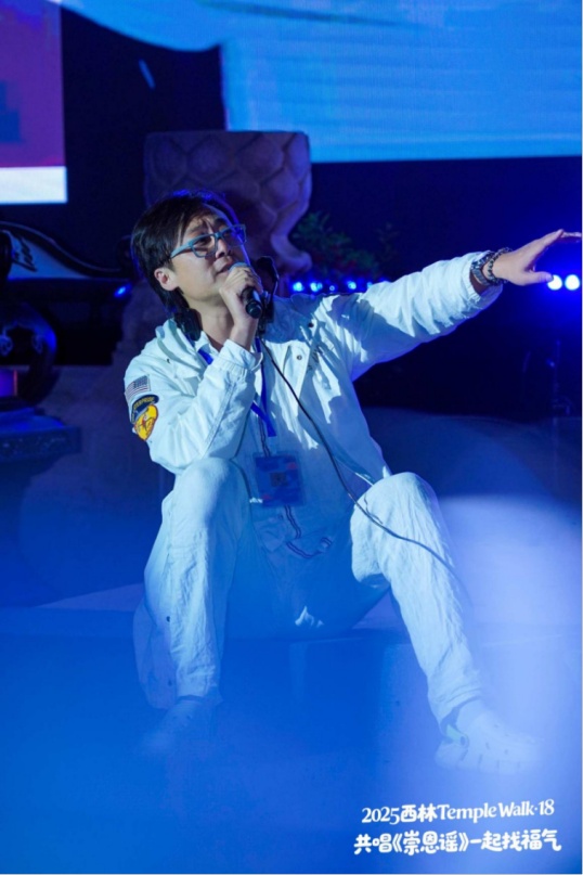最具亮点的“梵音新声”露天音乐会在古建群前震撼上演,青年艺术家们以电子音乐重构编钟古乐,将传统音律融入现代编曲,打造出跨越时空的视听盛宴。