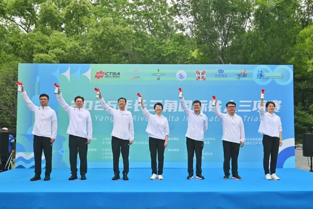 上海市副市长解冬、副秘书长王平,中国铁人三项运动协会主席冯宝忠,市体育局局长徐彬,青浦区区长金晓明,长三角生态绿色一体化发展示范区执行委员会副主任黄鸿鸿,青浦区副区长张彦等出席开幕式并为比赛发令