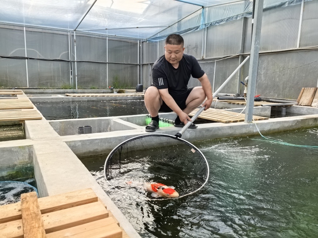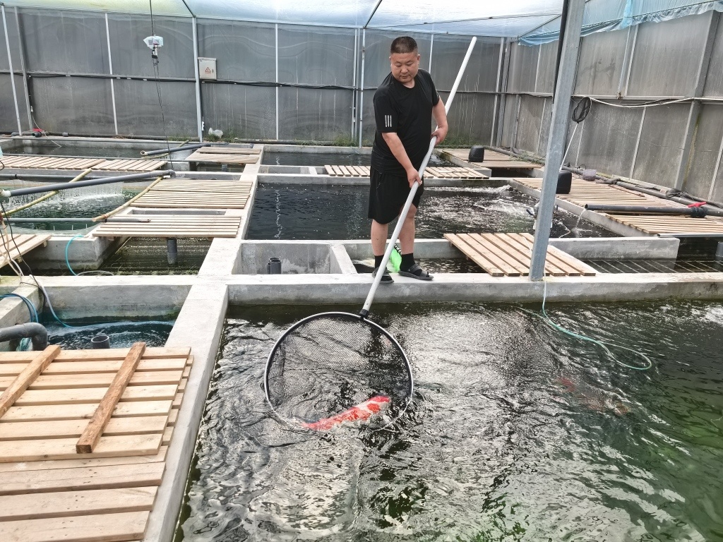 2023年,他从外地引进了2000多条纯种锦鲤,先后投入近500万,开启了青岛地区最大的锦鲤养殖场。