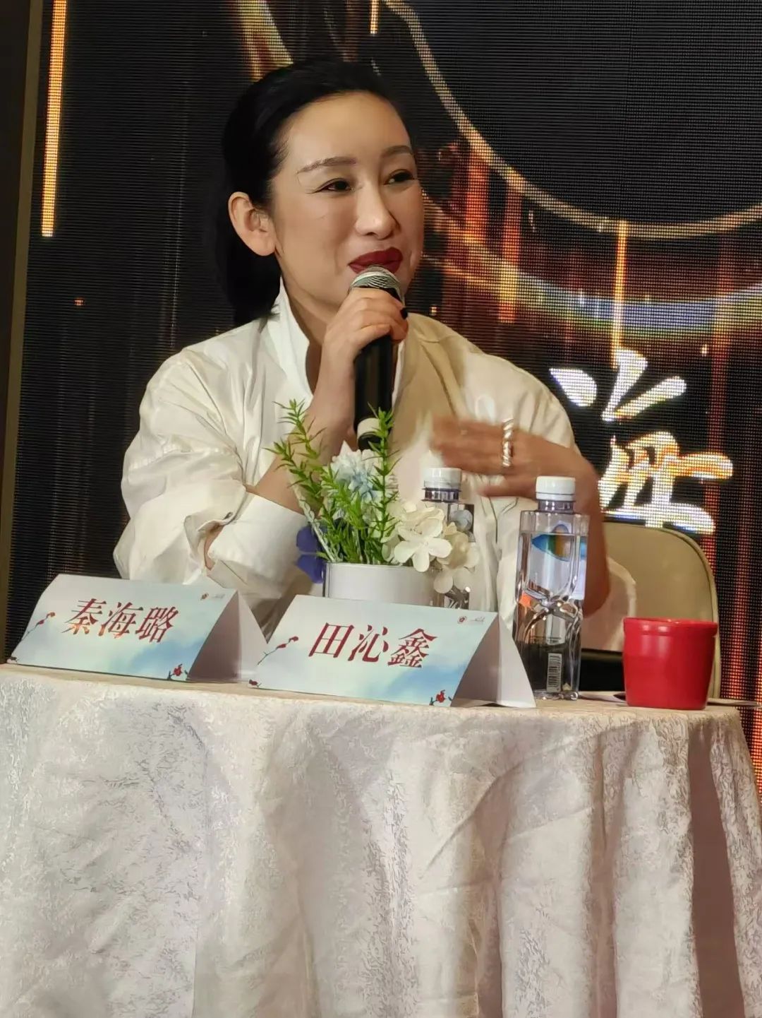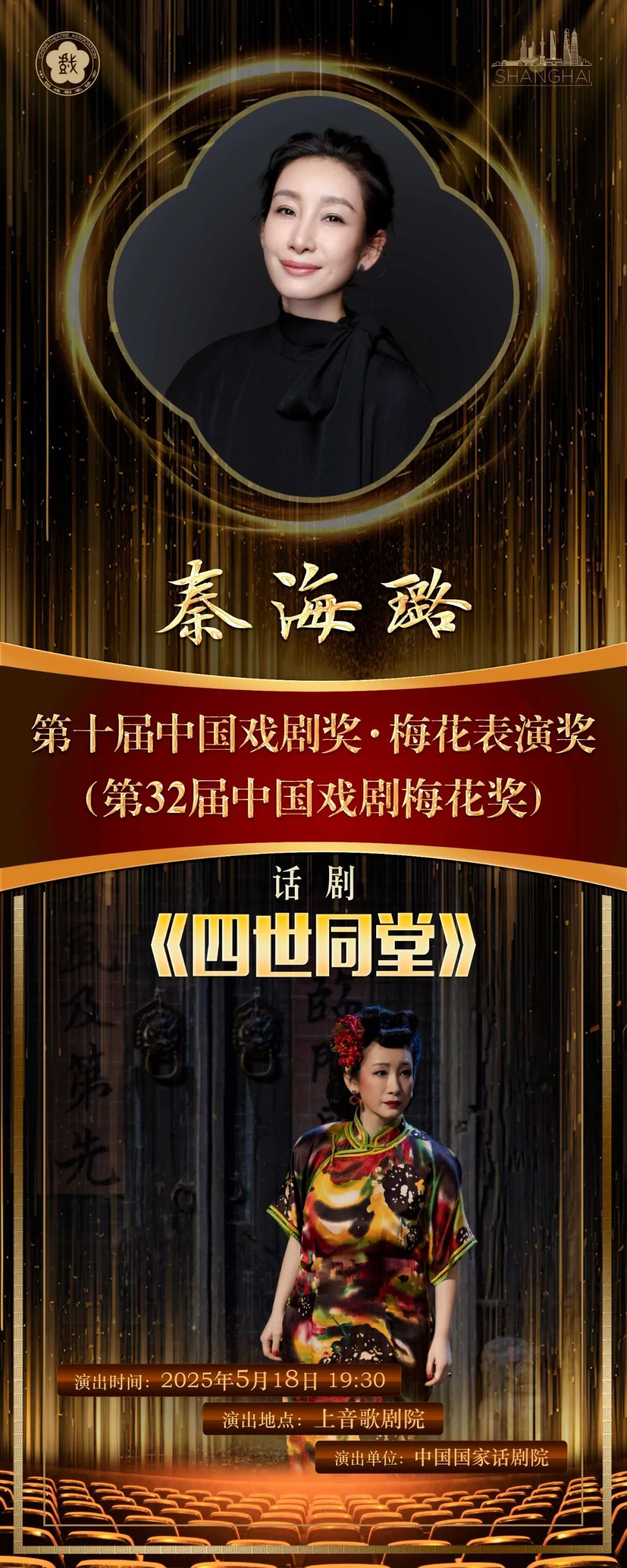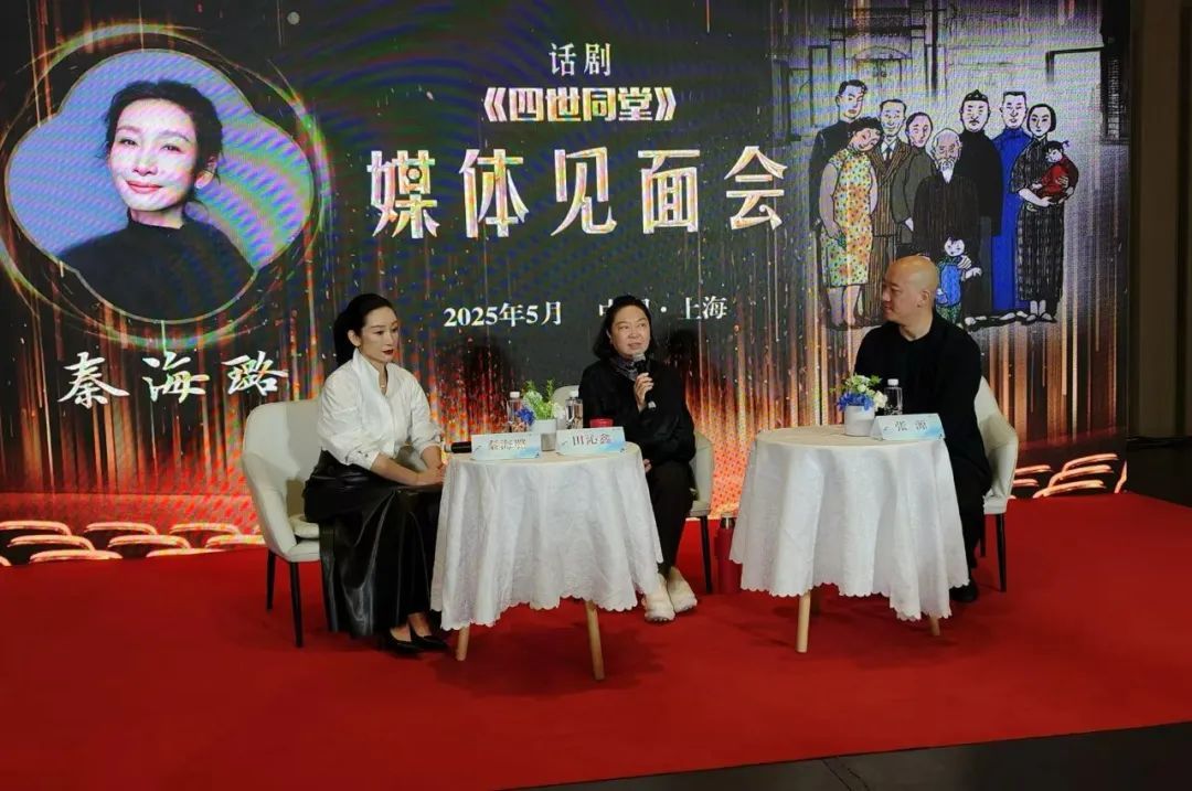 5月18日下午,第32届中国戏剧梅花奖终评剧目——由中国国家话剧院出品的话剧《四世同堂》媒体见面会在上音歌剧院歌剧排演厅举行。中国国家话剧院院长、话剧《四世同堂》导演田沁鑫,中国国家话剧院演员、话剧《四世同堂》大赤包扮演者、终评演员秦海璐到场参加。见面会由上海戏曲广播主持人张源主持。