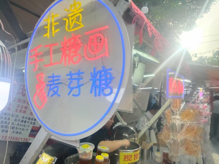 大街小巷寻常见到的糖画技艺也与时尚元素相融合,勾勒出万千形态。在南京老城南一处手工糖画摊子前,不仅摆放生肖图案转盘,还张贴着一张绘有热门动漫IP的牌子。摊主告诉记者,除了这些图案,顾客还可以提供自己喜欢的画像,她都可以制成糖画,比如现在很受小朋友欢迎的酷洛米、美乐蒂等图案。不过每张画价格不一样,比如叮当猫15元、小猪佩奇15元、爱莎30元。