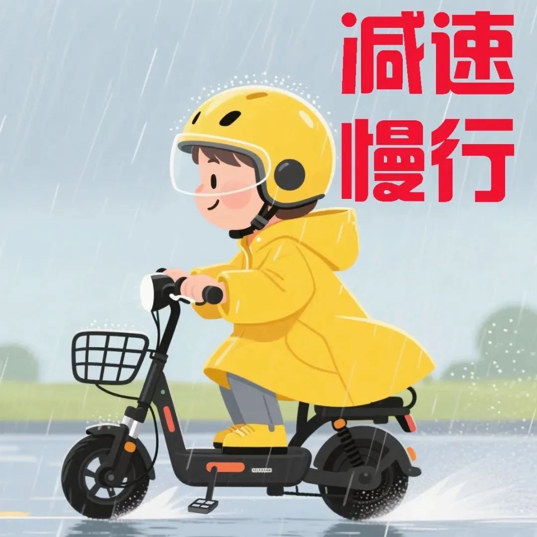 路面湿滑导致轮胎抓地力下降,雨天骑车需控制好速度,转弯时提前减速,避免急刹致使车辆侧滑。