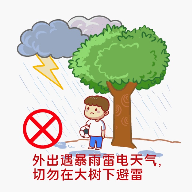 突遇雷雨天气,应尽快找到地势较高且牢固的建筑物作为安全停留点,不要在大树下、建筑物边缘或高层建筑施工现场等地方躲避,警惕雷击,避免物品坠落风险。
