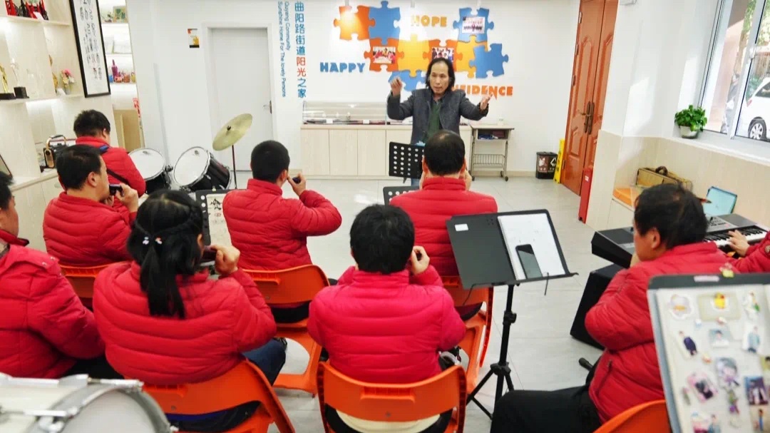 曲阳路街道“阳光之家”以特奥运动为纽带,开设旱地冰壶等特色课程,助力学员在市级赛事中屡获佳绩。2024年嘉昆太特奥邀请赛中,学员包揽男女组冠军。同时,“阳光之家”联合机关、学校、企业等组建“和鸣曲阳”助残联盟,推动残疾人融入社会。根据真实故事改编的话剧《灿烂的阳光》在上海、北京、台湾等地巡演百余场,引发强烈社会共鸣。“阳光小乐队”、珠心算团队等特色项目更屡登市级舞台,学员手工作品被东方明珠永久收藏。