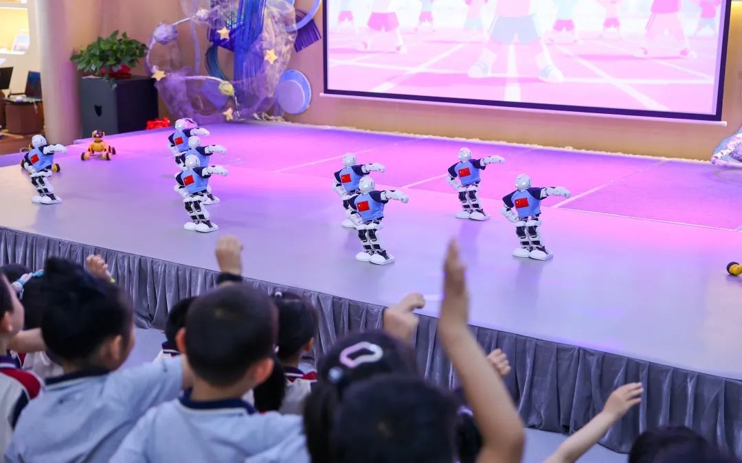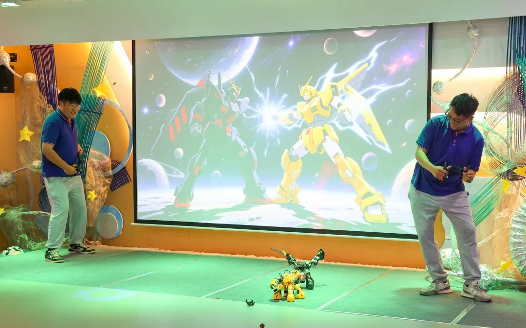 活动现场高潮迭起,一场跨越时空的“机器人文化秀”成为最大亮点。伴随古琴韵律,仿生机器人舒展双臂,流畅演绎二十四式太极拳;活灵活现的机器狮与师生互动共舞,传统艺术与人工智能的碰撞令全场沸腾。此外,机器人格斗环节更以机械编程与工程设计魅力,激发孩子们对智能科技的无限想象。“原来机器人也会中国功夫!”孩子们的惊叹声此起彼伏。