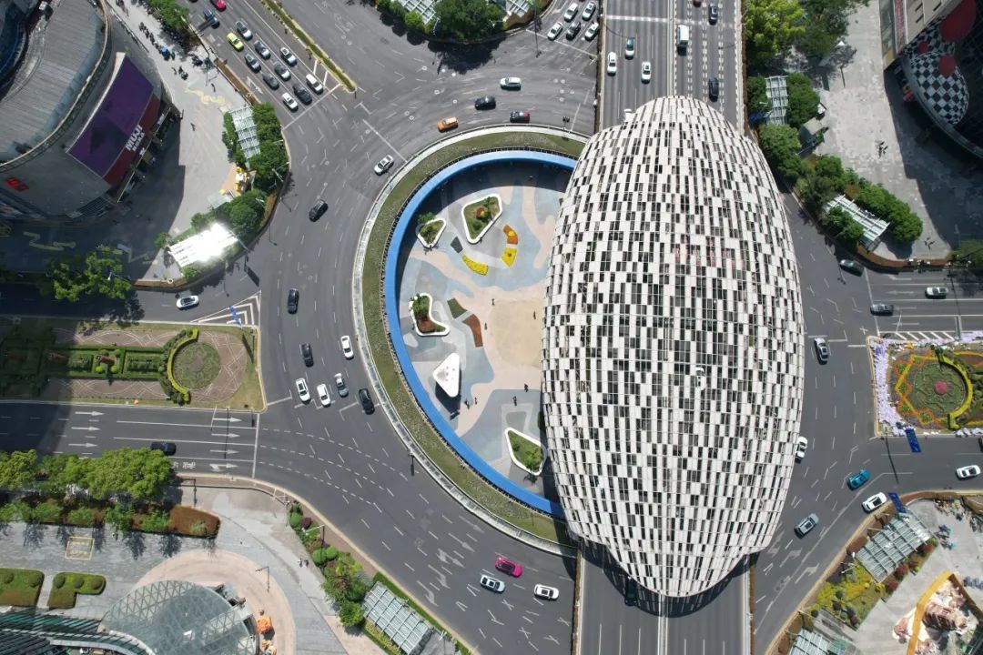 车行道平整宽阔,沥青路面在阳光下泛着柔和光泽,标线清晰醒目。两侧人行道采用花岗岩铺装,嵌入盲道与休憩座椅,沿途的“口袋公园”一片绿意盎然。
