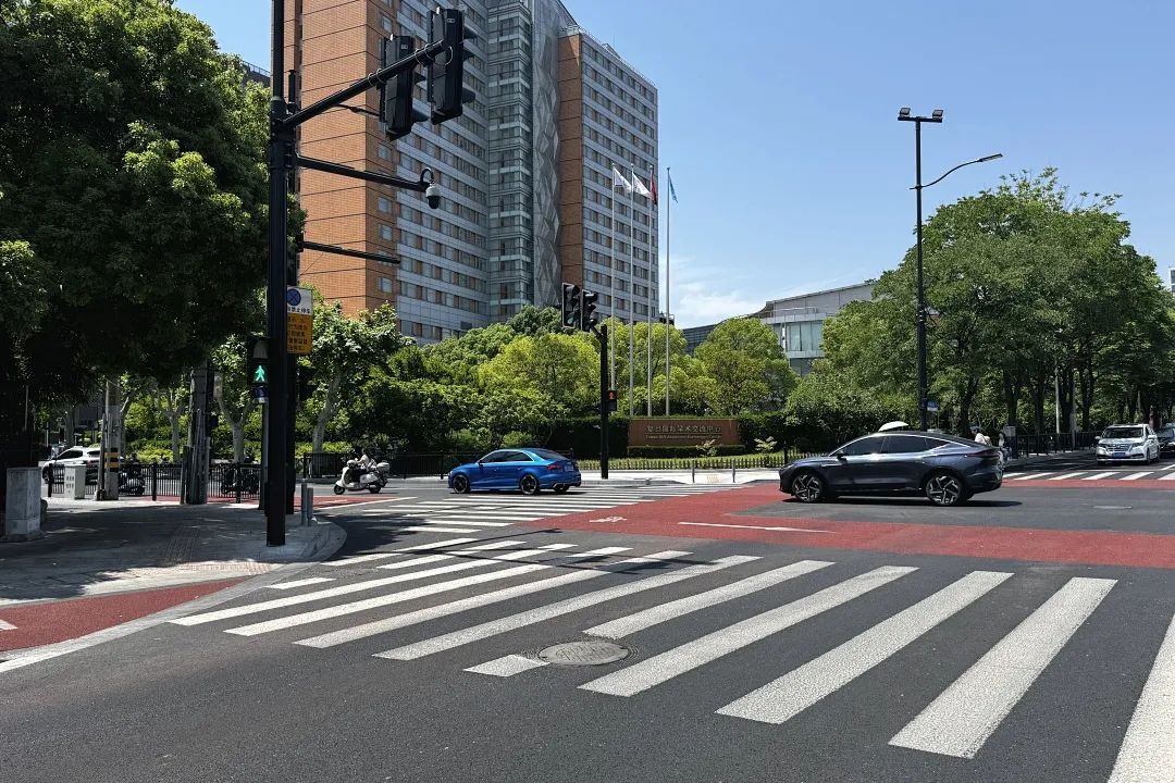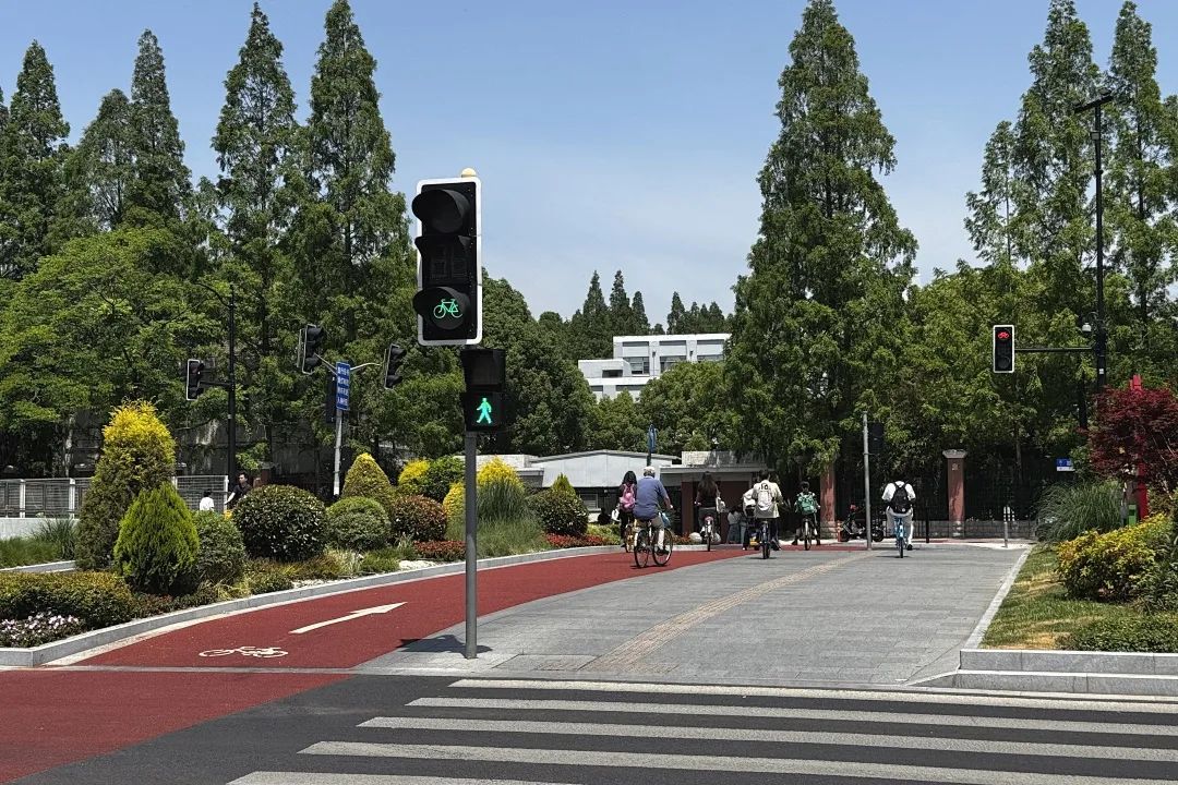 在此次改造中,项目团队因地制宜,在邯郸路(国权路—国宾路)段增设非机动车道,并同步完善沿线慢行交通系统,实现机非分离、人车分流。