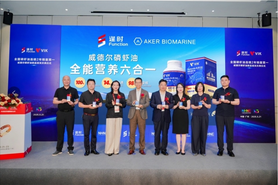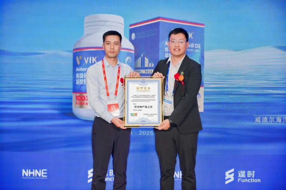 5月21日,在广州举办的NHNE中国国际健康营养博览会上,国际权威调研机构欧睿国际授予逢时(青岛)海洋科技股份有限公司(简称逢时科技)旗下VIK品牌“全国磷虾油连续2年销量第一的国货品牌”荣誉。逢时VIK同步推出针对年轻人群的威德尔磷虾油新品,加速布局大健康消费市场。