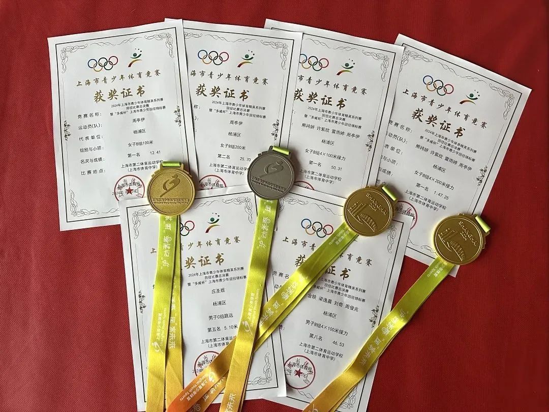 杨浦少体校田径队教练队伍由曾获得全国前三名的优秀退役运动员组成,执教能力强,他们不仅具备扎实的专业理论知识,还拥有丰富的实战经验与先进训练理念。在2024年上海市系列赛田径锦标赛中,杨浦少体校田径队派出54名队员参赛,经过三天激烈角逐,最终斩获7枚金牌、3枚银牌、1枚铜牌。