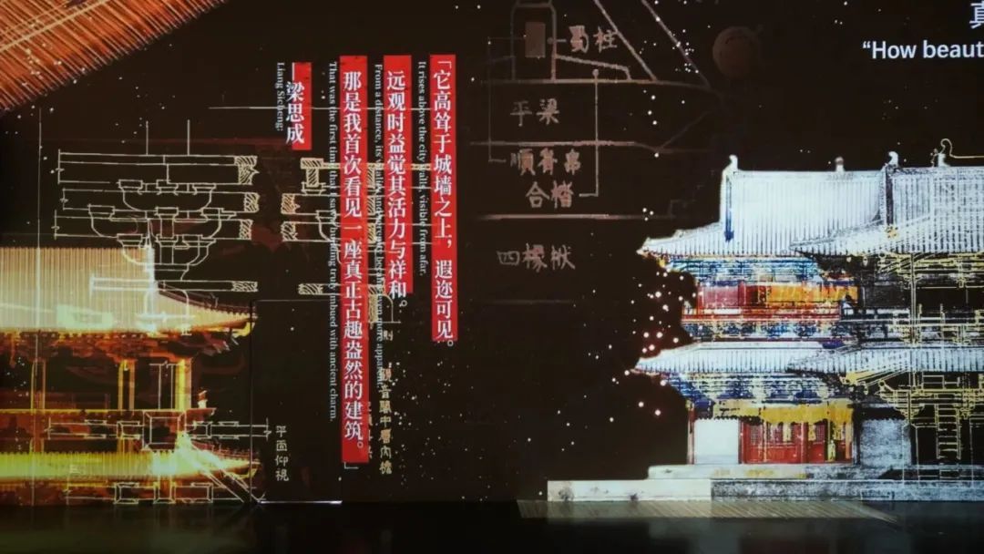 本次展览通过近400件由手稿、测绘稿、书信、照片等构成的珍贵文献、高精度还原的应县木塔、佛光寺、独乐寺观音阁古建模型,以及上海站特别打造的25分钟沉浸式光影故事厅。