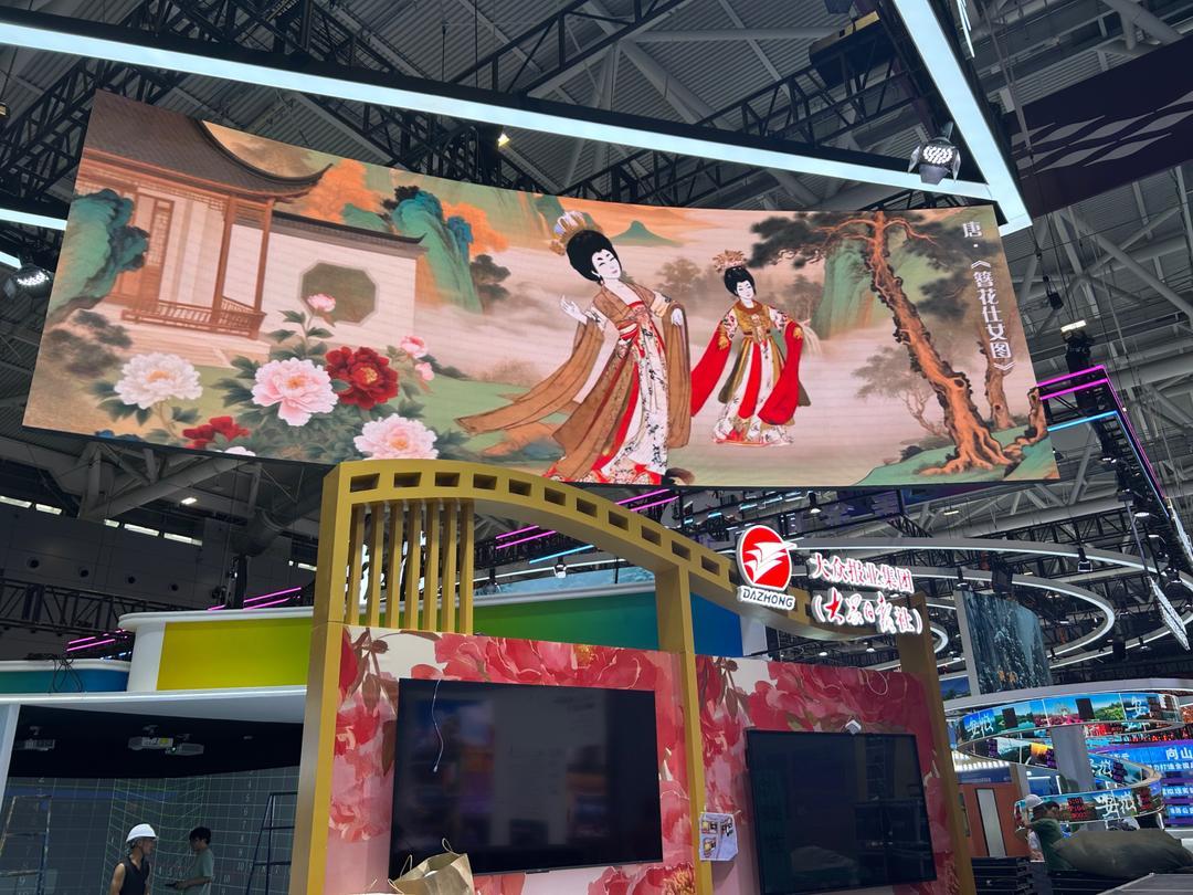负责策展的天一会展有关负责人介绍,山东展区外立空间打造“W”屏显矩阵,顶部两侧吊屏采用立体环抱式造型,勾勒张开双臂的拥抱姿态,传递齐鲁大地的热情好客。中间顶部打造“震撼螺旋胶片”结构,融合落地弧形LED屏,营造视觉冲击,凸显展览核心亮点。