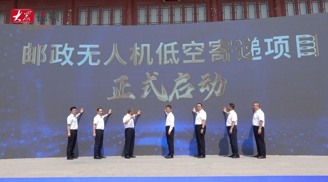 5月21日上午,济宁“飞跃山河 情系万家”邮政无人机低空寄递首飞仪式在微山县南阳古镇举行,一架无人机腾空而起,包含当天《大众日报》、信函和生鲜包裹等寄递物品仅用时5分35秒便从南阳古镇红色码头投递到3公里外的丁楼村。