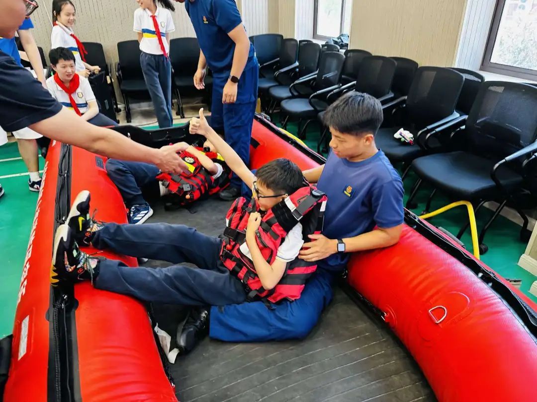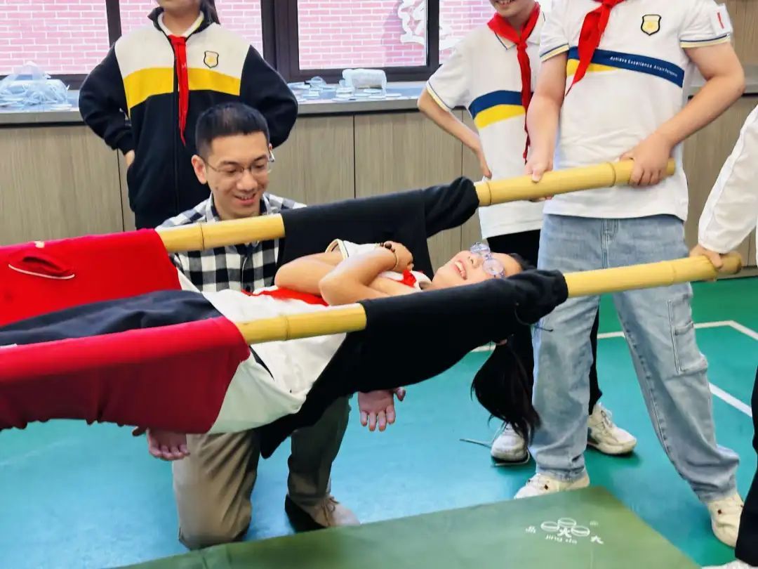 “你快看,台上怎么有只机器狗?” “呀,原来它是救援机器狗。今天的安全知识学习,好有趣啊!” “老师说还有动手体验的环节,我一定要体验一下。” “这是‘触电体验’机器?哇,原来触电会让手麻麻的,我以后一定不能乱碰插座。” 5月19日,在静安小学的大礼堂,前来参加“静宝安全营”的小学生们刚坐下就被台上的机器狗吸引了目光。原来,这不是普通的机器狗,而是专用的救援机器狗,只见它在台上展示了翻滚、负重和采集影像的技能,让小学生们惊叹不已。而随后的应急安全讲座和体验环节,更是让他们收获满满。 心肺复苏的知识大家都知道, 但是按压时要用多大的力气? 位置是否准确? 动作是否标准? 体验现场的心肺复苏模拟人会提示正确按压区域,并根据按压力度提示“按压不足”或“按压过大”,帮助小学生们建立正确的心肺复苏体验感。 海姆立克急救法是清除上呼吸道异物堵塞的重要方法,在训练员的帮助下,小学生们掌握了救助他人和自救的标准姿势。 水域救援环节,小学生们体验了在河边救援落水者的过程,掌握了应急救援艇的救援姿势,培养自救互救能力的同时,更增强了学生们的安全意识。简易担架制作环节,让小学生们学习如何充分利用身边物品如衣服、竹竿、软垫等,迅速制作担架,有效进行伤员搬运。 “触电体验”让小学生们体会到触电时的真实感受,对于用电安全的重要性有了更深的体会。平时握笔写字的双双小手,在此时化身为守护安全的“生命盾牌”,充满了力量和勇气。应急实操体验的最终目的,是增强小学生们的应急反应能力,面对突发紧急情况时保持冷静,迅速应对,同时也增强了他们的团队协作精神。