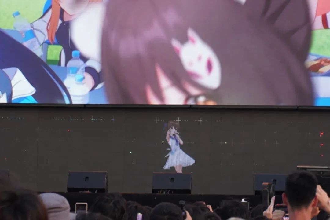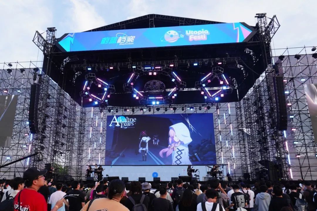 《蔚蓝档案》的虚拟艺人鹿乃、佩洛洛斯拉等登场演绎,唢呐版《Unwelcome School》更是让现场气氛达到高潮。《塞壬唱片》演绎了《明日方舟》六周年新曲《Heavenly Me》,观众们陶醉其中,不由自主地跟着律动摇摆身体。
