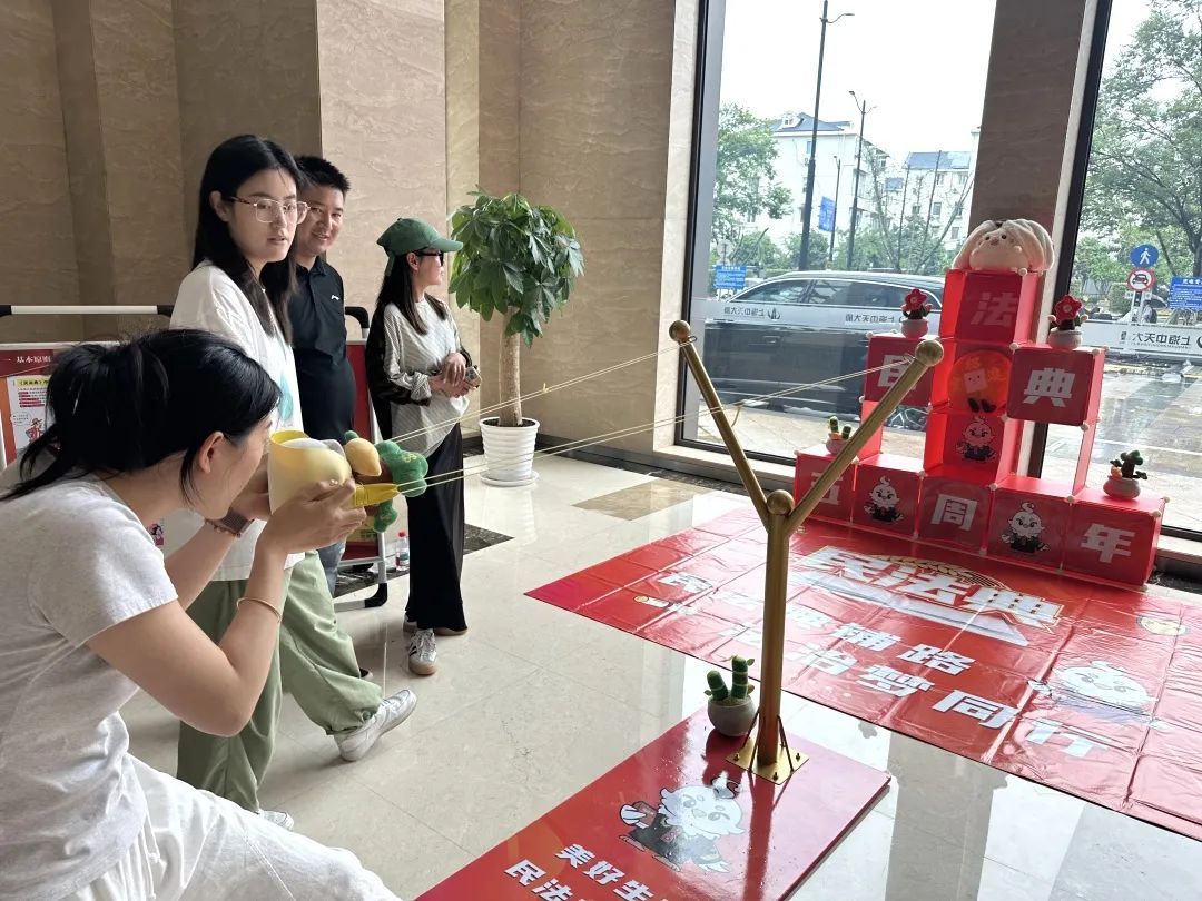 成功通关的幸运儿们,收获了刻有“民法典5周年”字样的法治种子,象征着法治理念在心中生根发芽。白领王女士午休时路过这里,不禁停下脚步参与其中,她说:“午休时间既能放松又能学法,这种形式新颖又实用!”