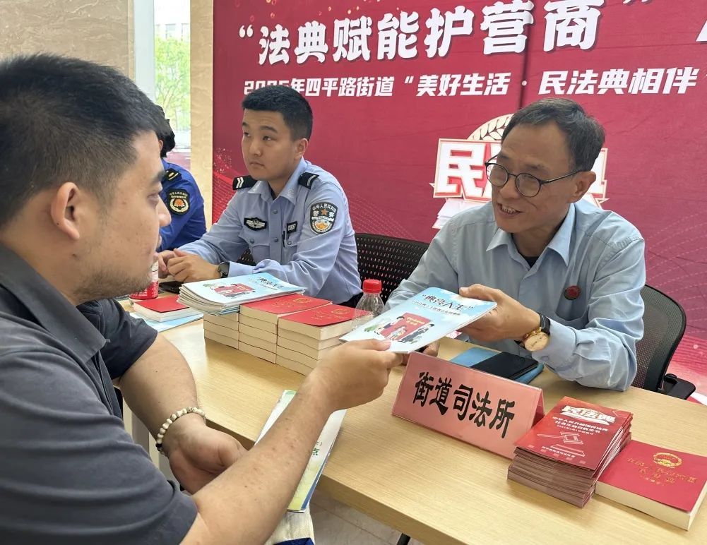 咨询台前,企业代表们带着满满的诚意和困惑而来,与专业人士面对面交流,探讨劳务纠纷预防、合规经营等关键问题。专业人士们耐心解答,为企业排忧解难。普法志愿者们也忙碌着,发放《中华人民共和国民法典》、反诈等宣传材料,还有创意十足的法治可乐等宣传品,助力企业筑牢法律防线。四平路街道司法所负责人告诉记者,他们希望通过多元服务,让法治成为企业发展的“隐形铠甲”,为企业保驾护航。