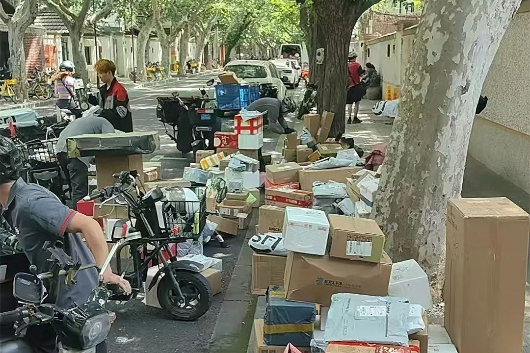 整治行动中,执法队员发现某快递网点因为近期快递业务量激增,为了图方便,不仅将快递包裹堆满大半条人行通道,甚至还有一些被堆放到非机动车道上,影响了行人的正常通行和非机动车的正常行驶。执法人员当场依据《上海市市容环境卫生管理条例》,对该快递网点快递人员进行批评教育,讲解相关法律法规以及快递占道的危害,要求立即清理占道的快递包裹,恢复道路畅通。