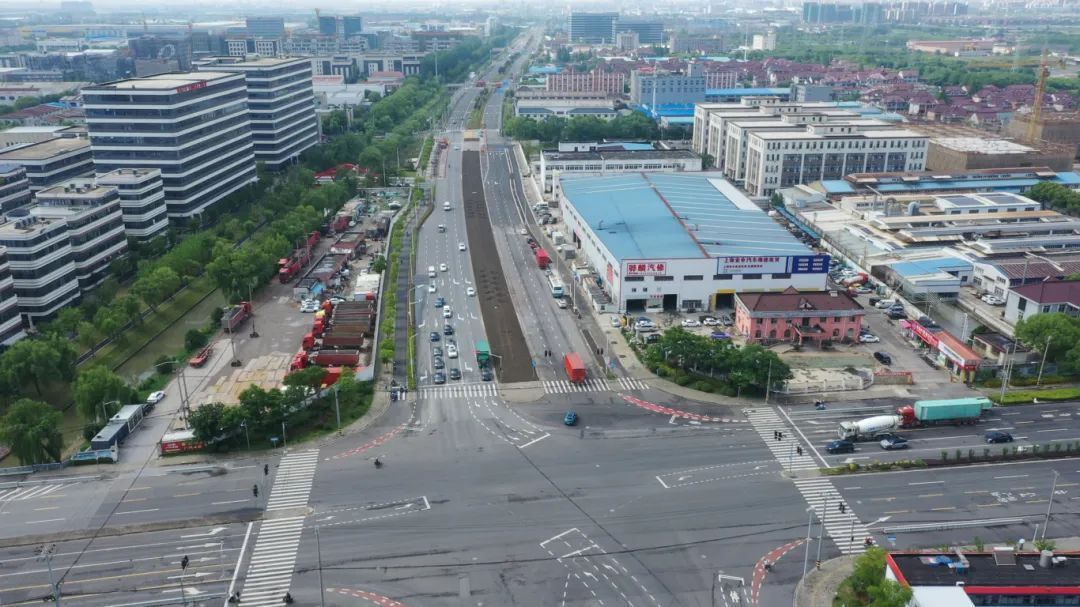 富长路(S20~金石路)道路新建工程全长约13.8公里,是宝山区“七纵八横”骨架公路网中的重要组成部分。其中富长路C03标,南起宝安公路、北至友谊西路,道路全长约1.245公里,道路等级为二级公路,红线宽度50~60米。本标段于2016年6月正式开工,2019年底,除富联一路至宝安公路段外,富长路C03标实现双向开放交通。为确保市民及周边园区工作人员日常通勤需求,宝山区政府重大工程建设项目管理中心对道路西半幅标线进行改造,临时开放道路西半幅长达5年多。