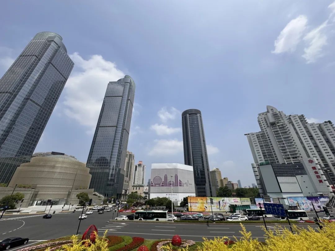 一改昨日阴雨天气,今日阳光明媚。早上十点,蓝天白云重现,徐家汇商圈被暖阳包围,体感闷热。天桥下车水马龙,桥上行人纷纷打上遮阳伞步履匆匆,一些家长带着孩子在阴凉处休憩。市民王女士告诉记者:“最近天气多变,一会儿晴一会儿雨,像是黄梅天湿漉漉黏答答的,齁势。”
