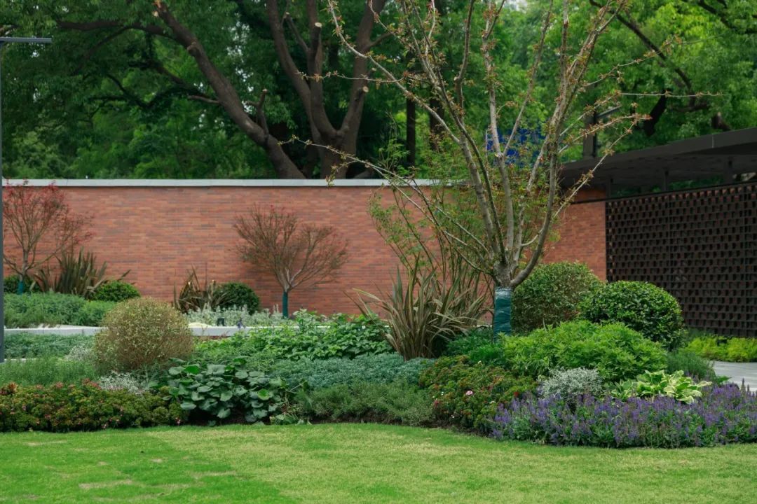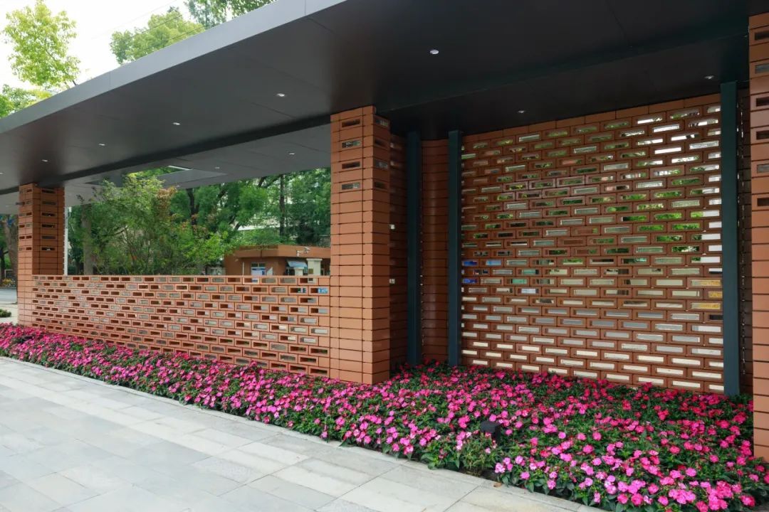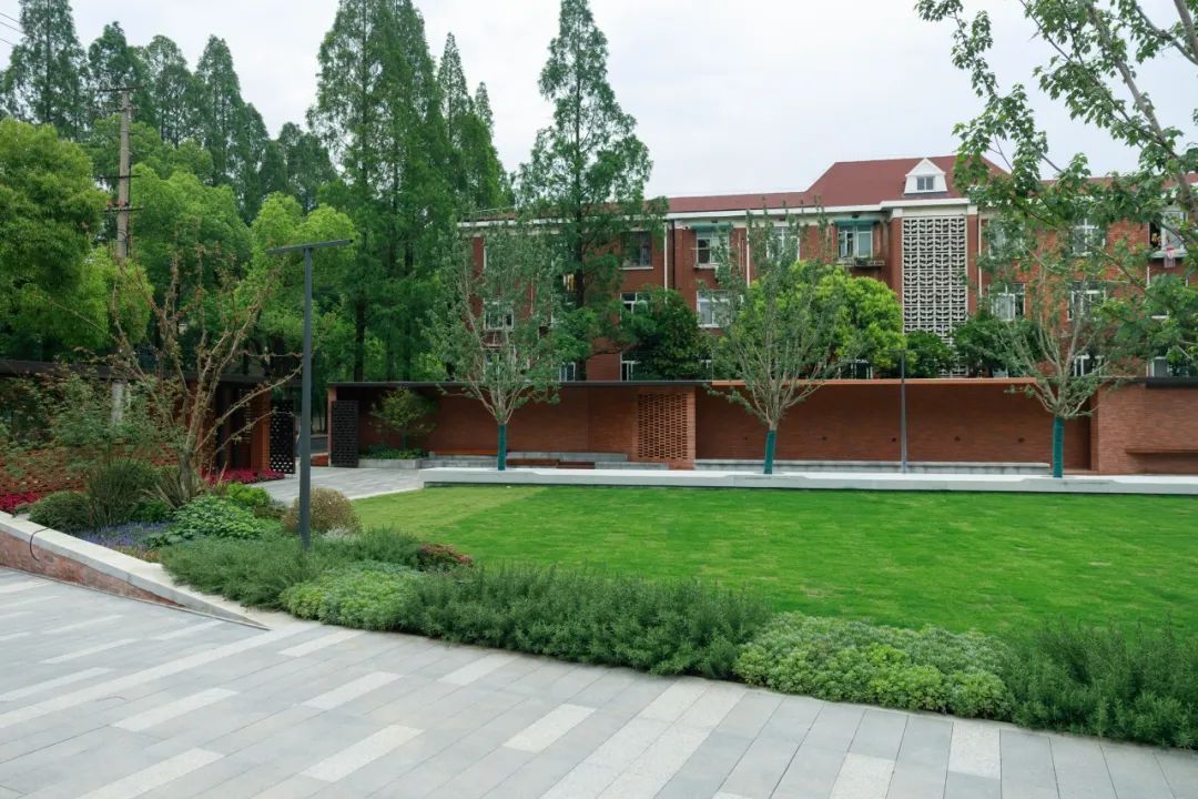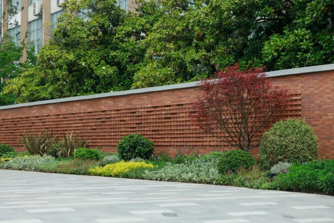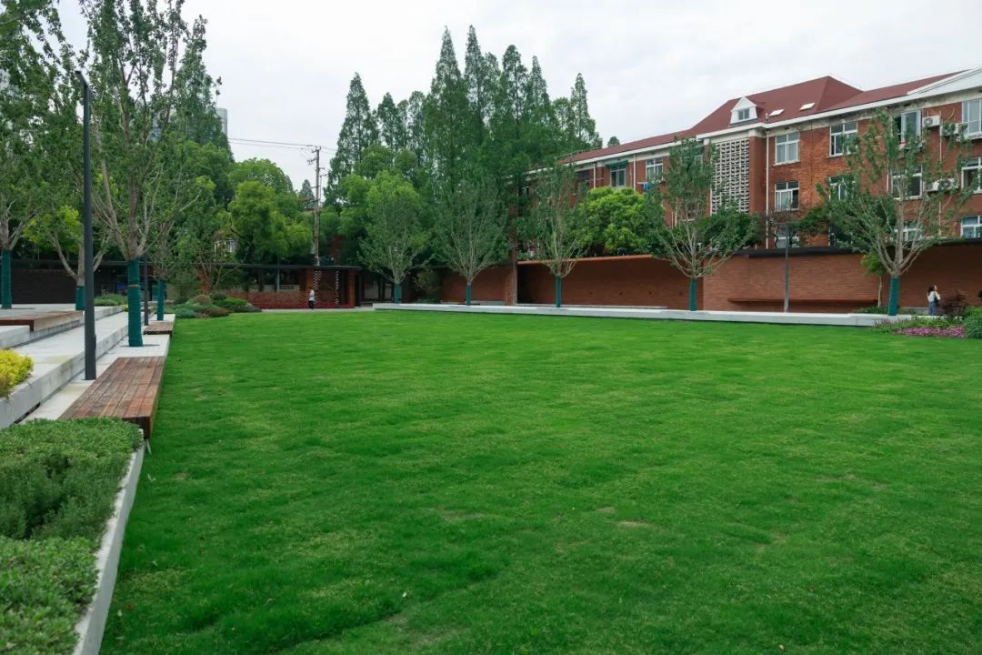 走进这块占地超1800㎡的绿地空间,熟悉的“复旦红”扑面而来。复古的红色砖墙将空间整齐分割,随处可见的休息座椅、宽敞漫步道成为了不少居民晨练、散步的“家门口”好去处,而中心的超大草坪推门见绿,更让这里成为了一处新的“城市氧吧”。